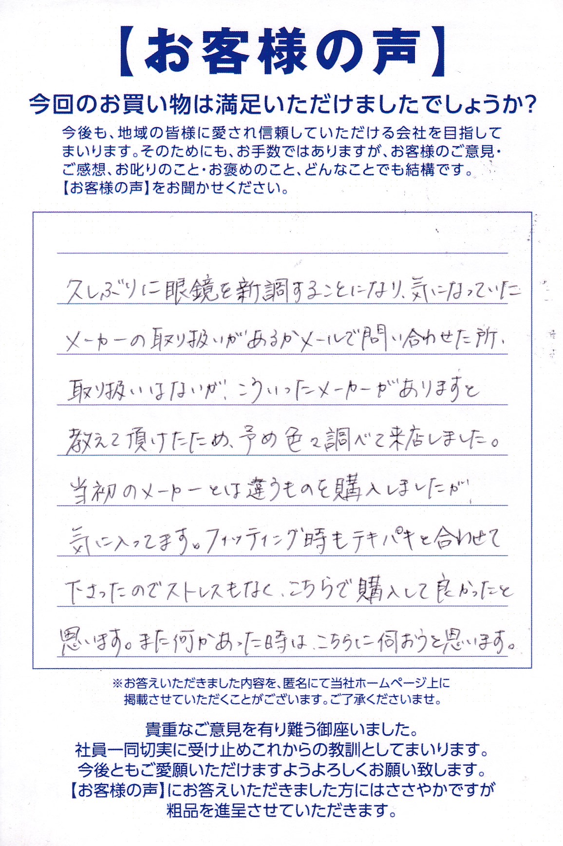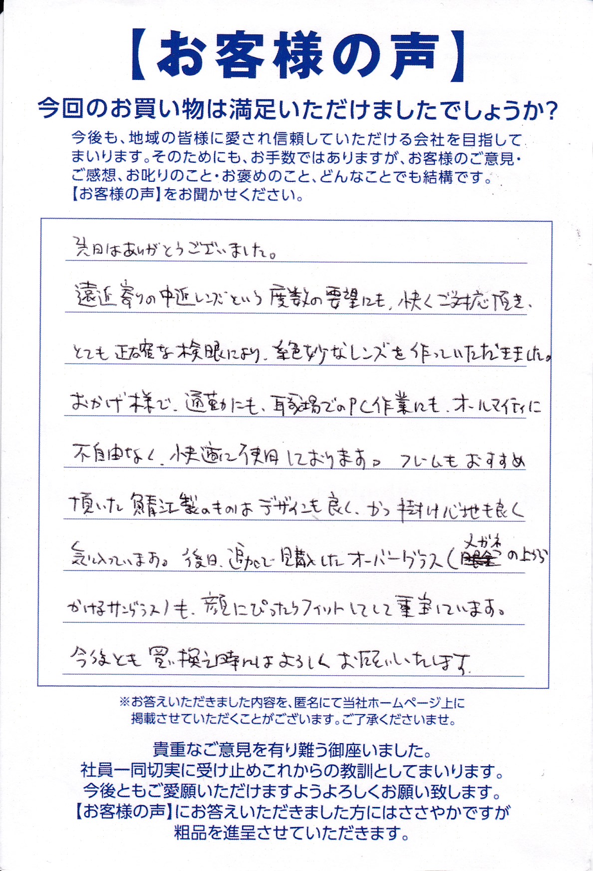 私たちが大切にしているのは、数値上の正しさではなく、フィールドで発揮される「最高の見え方」です。多くのアスリートや趣味を楽しむ方々に選ばれ続けてきた理由を、実際にお作りいただいたお客様の本音からご紹介します。