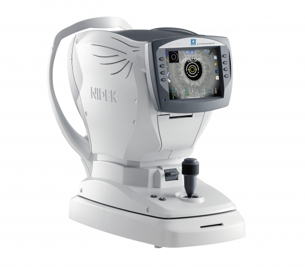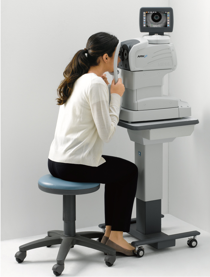 精巧な眼鏡をつくるための第一歩は、お客様がリラックスした状態で測定することです。当店が導入している「ARK-F」は、最新の眼検出カメラが瞳を自動で捉え、音声ガイダンスに従うだけで測定が完了するフルオートシステム。