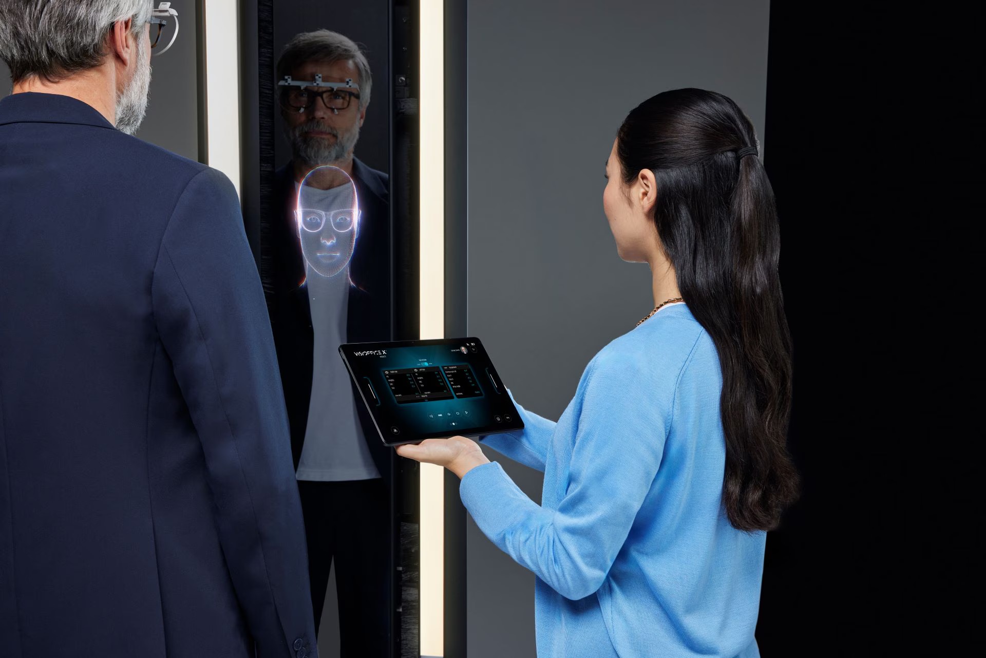 あなたの目の動きや姿勢には、あなただけの「癖」があります。最新鋭の3Dカメラ「Visioffice X+」は、そのわずかな個性を捉え、レンズ設計に反映させる最新デバイスです。